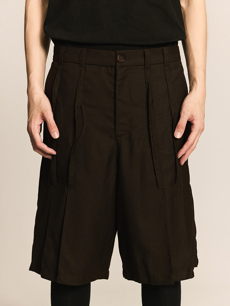 Pleated Skirt Pants Brown