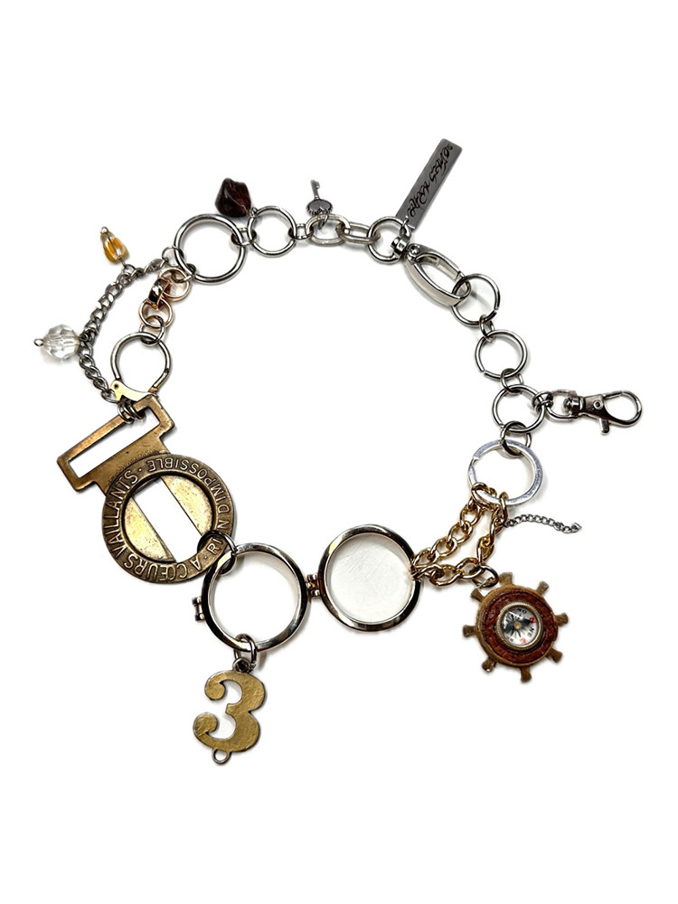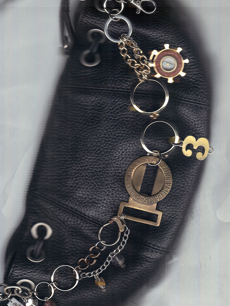Composition: chains, vintage metal, objects, leather